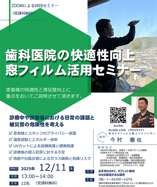 歯科医院の快適性向上 窓フィルム活用セミナー
