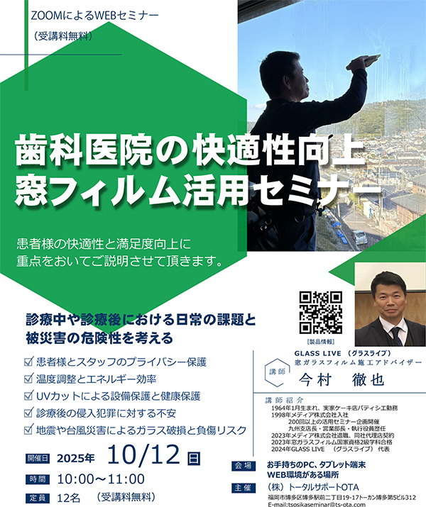 歯科医院の快適性向上 窓フィルム活用セミナー