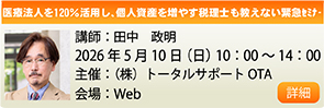 | 2025年10月16日 2026年02月医療法人を120%活用し、個人資産増やす税理士も教えない緊急セミナー(Web) |