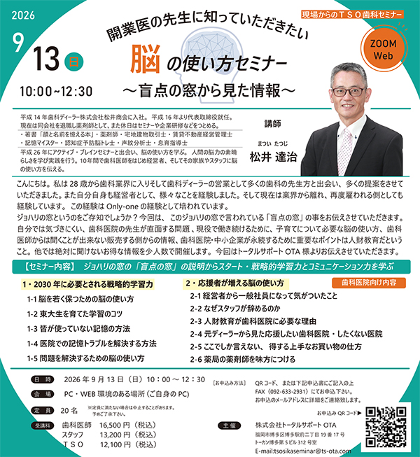 10年間で歯科医師をはじめ経営者、そしてその家族やスタッフに脳の使い方を伝える。