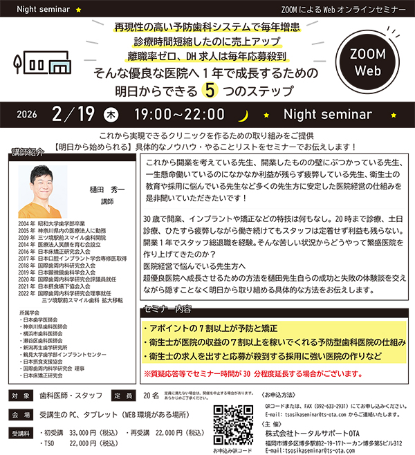 これから開業を考えている先生、開業したものの壁にぶつかっている先生、一生懸命働いてるのになかなか利益が残らず疲弊している先生、衛生士の教育や採用に悩んでいる先生など多くの先生方に安定した医院経営の仕組みを是非聞いていただきたいです!