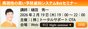 | 2025年09月12日 2026年01月再現性の高い予防歯科システムセミナー(Web) |