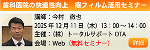| 2025年11月05日 2025年12月歯科医院快適性向上 窓フィルム活用セミナー(受講料無料)(Web)NEW |