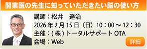 | 2025年10月29日 2026年02月開業医の先生に知っていただきたい脳の使い方セミナー(Web)NEW |
