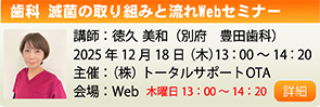 | 2025年11月14日 2025年12月歯科滅菌の流れセミナー(Web)NEW |